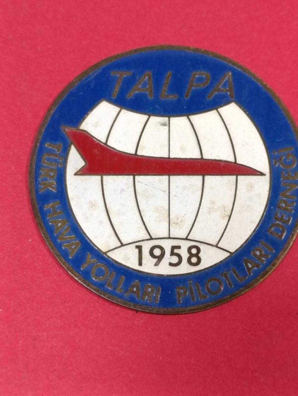 MDL17-----TALPA TÜRK HAVA YOLLARI PİLOTLARI DERNEĞİ ESKİ PİRİNÇ LOGO başlıklı antika/koleksiyon objesi Türkiye menşe’lidir. 1950-1999 arası dönemine aittir.