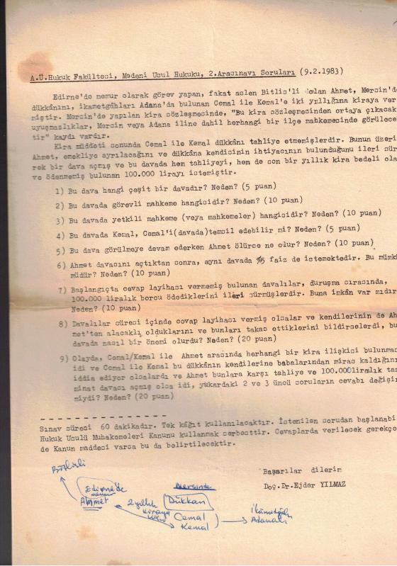 MEDENİ USUL HUKUKU YAZ DÖNEMİ SINAV SORULARI ( 3-7-1983 , 14:00 ), en son bir ay önce güncellenmiştir.
