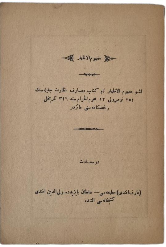 MEFHUM-UL İZHAR FEVAİDÜ'L VALİDEYN - BİRGİVİ, BİRGİVİ tarafından kaleme alınmıştır. Kitap Ali Efendi Matbaası tarafından [İstanbul] yayınlanmıştır. 152 sayfadır. MEFHUM-UL İZHAR FEVAİDÜ'L VALİDEYN - BİRGİVİ adlı eser Osmanlıca dilindedir.