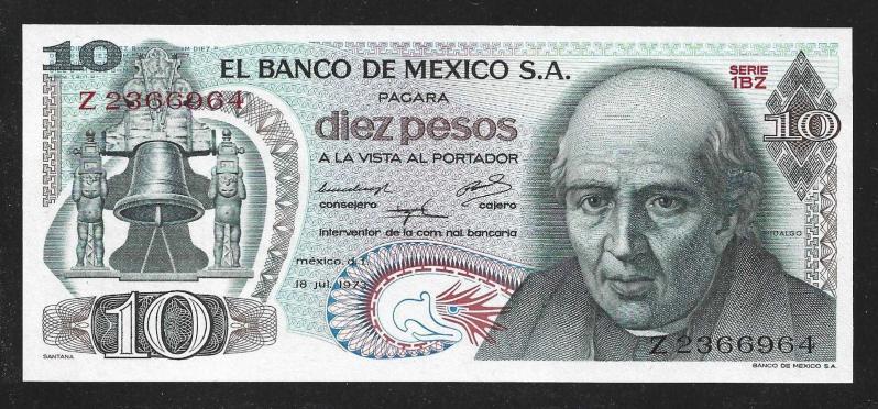 ** MEKSİKA ( 10 * PESOS ) 1973 * Z serisi - ÇİL, bir saat önce satışa sunulmuştur.