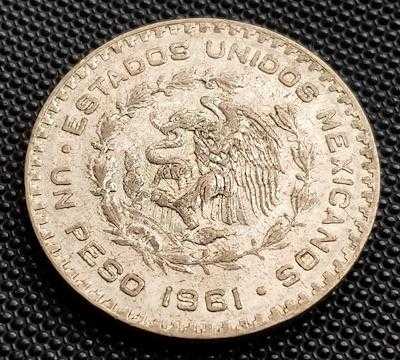 MEKSİKA 1961 YILI 1 PESO 15,92 GR. GÜMÜŞ(ayar:0,1), dün satışa sunulmuştur.