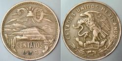 MEKSİKA 20 CENTAVOS 1959. TEOTİHUACAN GÜNEŞ PİRAMİDİ GÖRSELLİ. 28,5 mm ÇAPINDA. EN NADİR TARİH.