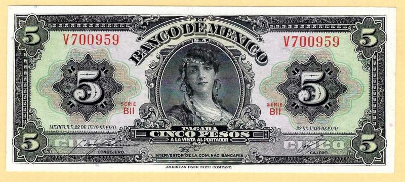 MEKSİKA Mexico 5 Pesos 1970 P 60k UNC (15 672) ÇİL, 3 ay önce satışa sunulmuştur.