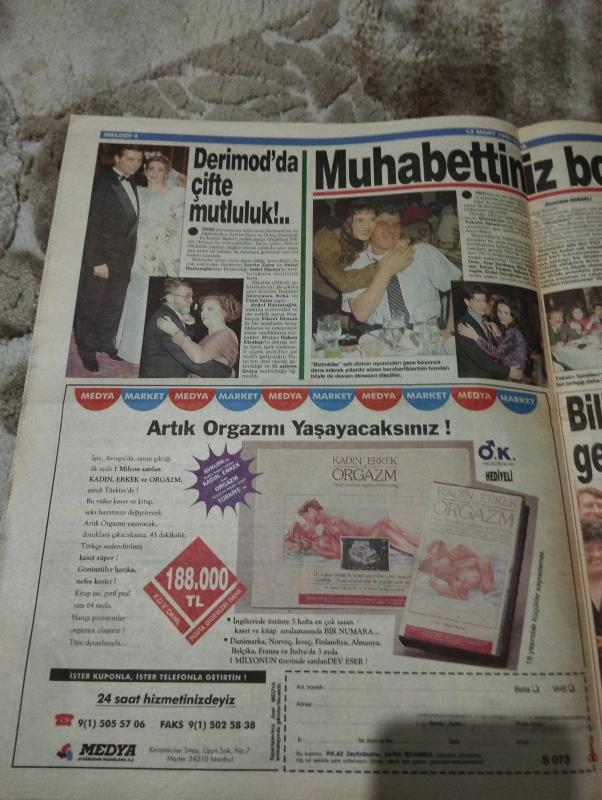 MELODİ GÜNLÜK HAYATIN SESİ Gazetesi-13 Mart 1992- Yaşanmış aşk hikayeleri -Pembe rüyalar -Süleyman Turan-cici kız-astro-melodi-Bülent Kısa-Gönül abla-unutulmayan aşklar-cinsel bilgiler-George and Lynne-Fred-Perde arkası-Aykut İşıklar- Uzay Savaşçıları -Özel Haber- bahşiş mafyası-kenan erçetingöz-iç giyimde rekabet-aldatılan nastasia-sabrın zaferi-selime altuntaş-muhsin güney-dargınlık sona erdi-tayyar ışıksaçan- Zorba taverna-hülya avşar-coşkun sabah-fedon-tazminat istiyor-rus votkasını Türk kızlar tanıttı-ukrayna sanayi ve ticaret odası-muhabbetiniz bol olsun-bizimkiler-aykut oray-ayşe sarıkaya-mine şensoy-ercan yazgan-hikmet karagöz-erdal özyağcılar-kazandıran formül-ibrahim tatlıses-ümit efekan-nil ünal-aydemir Akbaş-love story-müşerref Akay adlı eser, Kitap > Süreli Yayınlar > Gazeteler > Türkiye > Genel > Günlük kategorisinde İkinci El olarak satıştadır.