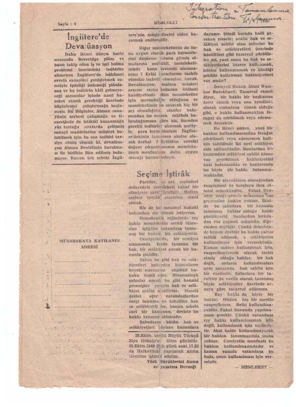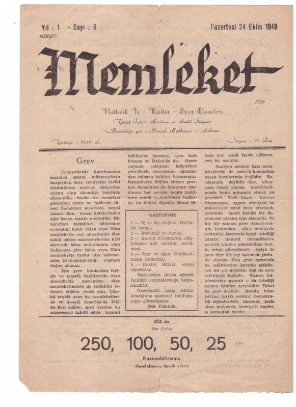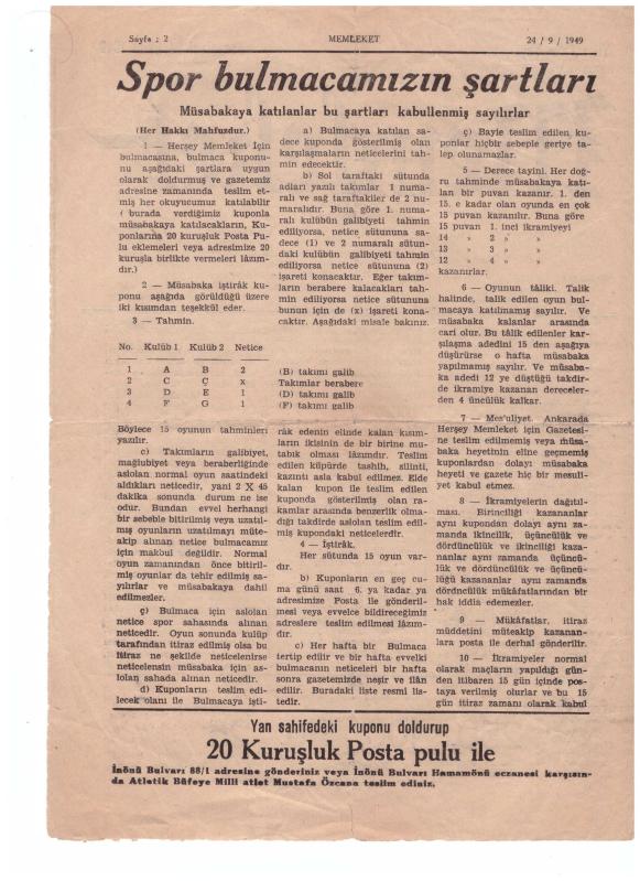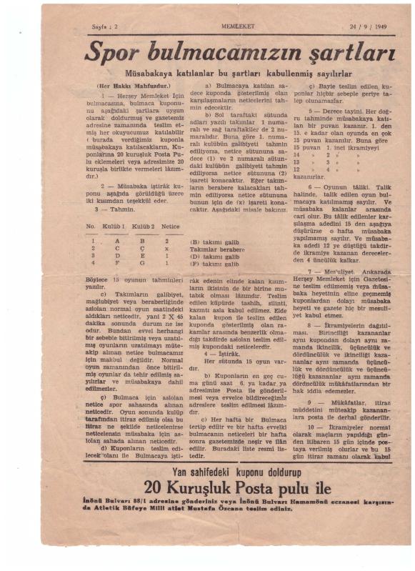 MEMLEKET HAFTALIK GAZETE 24 EKİM 1949 O HAFTANIN FUTBOL MAÇLARI, en son 21 gün önce güncellenmiştir.