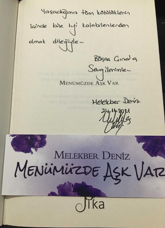 MENÜMÜZDE AŞK VAR - İMZALI -, MELEKBER DENİZ tarafından kaleme alınmıştır. Kitap 2021 yılında PİKA YAYIN tarafından [İSTANBUL] yayınlanmıştır. 324 sayfadır. MENÜMÜZDE AŞK VAR - İMZALI - adlı eser Türkçe dilindedir.