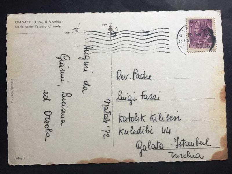 MERYEM ANA ve KUCAĞINDA BEBEK İSA TASVİRİ, HRİSTİYANLIK KARTPOSTALI - İTALYA PULUYLA, - İSTANBUL- GALATA, KULEDİBİ KATOLİK KİLİSESİNE YAZILI MEKTUP - 15 x 10 cm EBADINDA, ORİJİNAL, en son 1 yıl önce güncellenmiştir.