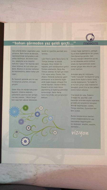MESAM VİZYON, TÜRKİYE MUSİKİ ESERİ SAHİPLERİ MESLEK BİRLİĞİ DERGİSİ - NİSAN MAYIS 2007 SAYI: 4 SEZEN AKSU - CEM KARACA - EMRE AYDIN - ÖZDEMİR ERDOĞAN - OF AMAN NALAN - NAİM DİLMENER - NECİP SARICI - AMİR ATEŞ - ALİ RIZA BİNBOĞA - SUAVİ - TURHAN TAŞAN - AHMET SELÇUK İLKAN - ALİ COŞAR - ALİ YAVUZ - CAHİT BERKAY - FARUK DEMİR - HASAN SALTIK - ORHAN GENCEBAY - ALİ TEKİNTÜRE - NECMETTİN OVACIK - O. SUAT ÖZÇELEBİ - BÜLENT ERÖZ - TANER KOÇAK - ESRA OKUTAN - ASLI KARATAŞ KALKAN - ÖNDER KIZILKAYA - EMRE ÇAYLA - AYHAN AKKAYA - CEM TANIR - AYDAN ÇELİK - SİNAN KESGİN - DİDEM İNCESAĞIR SEZEN AKSU: ŞARKIM KİME DOKUNUYORSA ONA AİTTİR - USTAYA SAYGI: CEM KARACA - MİAM VE KAMRAN İNCE - YENİ ÇIKIŞ: EMRE AYDIN - KORSAN'IN SEYİR DEFTERİ - SÖYLEŞİLER: ÖZDEMİR ERDOĞAN - OF AMAN NALAN - EUROVISION TARİHİ - YEŞİLÇAM MÜZİKLERİ - ULUSLARARASI MIDEM FUARI - FİKRİ MÜLKİYET HAKLARI GÜNÜ - ANILAR VE MÜZİK: AMİR ATEŞ GECESİ - AZERBAYCAN MESLEK BİRLİĞİ İLE ANLAŞMA - TAM TAKIM EKSİKSİZ 62 SAYFA adlı eser, Kitap > Süreli Yayınlar > Dergiler > Magazin, Moda kategorisinde İkinci El olarak satıştadır.