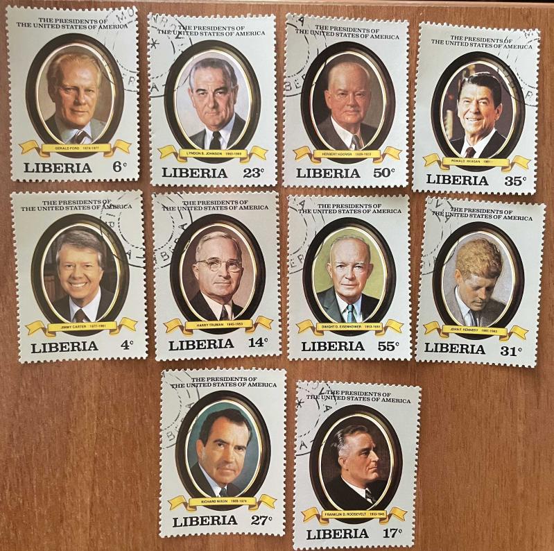 MEŞHURLAR.ABD BAŞKANLARI.LİBERYA 10 PUL..:DAMGALI, dün satışa sunulmuştur.