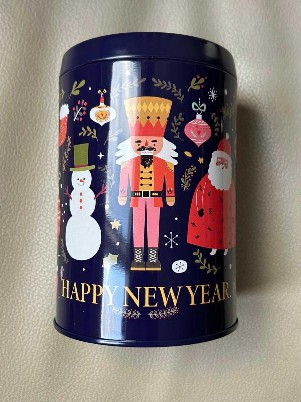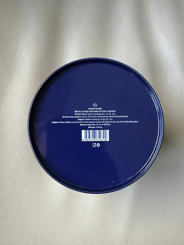 Lacivert renkli yılbaşı temalı kapaklı silindirik saklama kutusu. Metal. Boyutlar: Çap=9 cm, Yükseklik= 13,3 cm. #yılbaşı #kutu #metal #hediye #lacivert