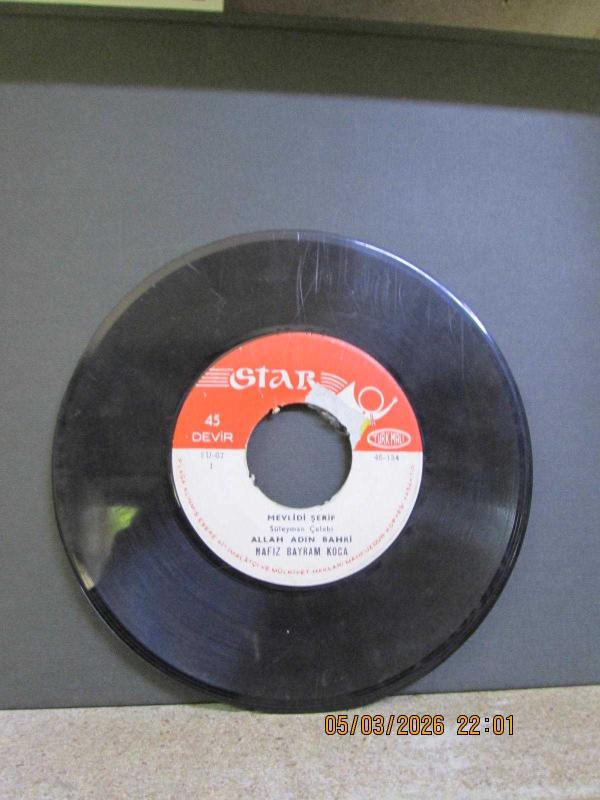 MEVLİDİ ŞERİF SÜLEYMAN ÇELEBİ HAFIZ BAYRAM KOCA ALLAH ADIN BAHRİ / NUR BAHRİ 45 DEVİR PLAK, en son bir ay önce güncellenmiştir.