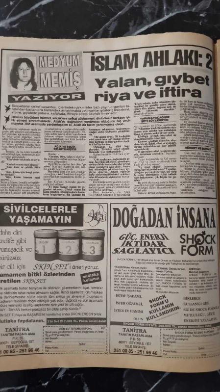 MEYDAN PAZAR GAZETESİ - 7 ŞUBAT 1993 - İKİSİ DE ASSOLİST, EMRAH İLE SEREN SERENGİL - RAŞİT SÜERKAN , KIRMIZI ŞAPKALI KIZLAR - KADINLAR MATİNESİ ESKİ GÜNLERİNİ YAŞIYOR - MEDYUM MEMİŞ , İSLAM AHLAKI , YALAN , GIYBET ,RİYA VE İFTİRA - MEGA ŞOV'UN AĞIR TOPLARI , HÜLYA AVŞAR , İBRAHİM TATLISES , DEMET AKBAĞ VE RASİM ÖZTEKİN - AJDA PEKKAN , EMEL SAYIN , SEZAN AKSU - HİKMET UYSAL ELİNİ KANA BULAYAN KADIN - LEZBİYEN İLİŞKİLERDE BÜYÜK PATLAMA - GÜLTEN SİNAN ANLATIYOR , BİR BEBEK İÇİN CANIMI BİLE VERİRİM - YASAK İLİŞKİYE GİRDİĞİ AKREP ŞÜKRİYE ' NİN KURBANI OLDU - MODA , ŞIKLIĞA İMZA ATIN - BİRAZ DA MİZAH - ATİLLA BİRKİYE , SON YEMEK - LALE MANSUR , DÜŞ GEZGİNLERİ -WHİTNEY HOUSTON ' UN BAŞROL OYNADIĞI BADYGUARD FİLMİNİN MÜZİĞİ BÜTÜN DÜNYADA KAPIŞILIYOR - NURSELİ İDİZ adlı eser, Kitap > Süreli Yayınlar > Gazeteler kategorisinde İkinci El olarak satıştadır.