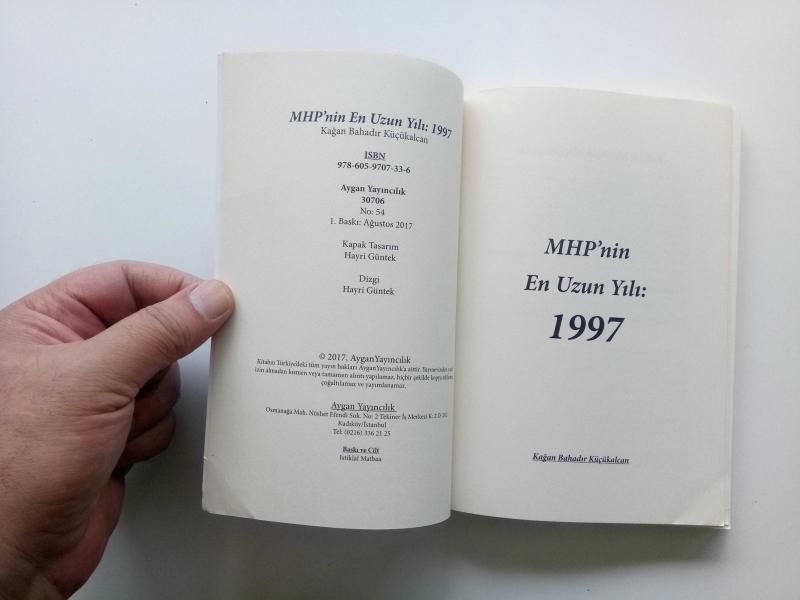 MHP'NİN EN UZUN YILI :1997 (YENİ), KAĞAN BAHADIR KÜÇÜKALCAN tarafından kaleme alınmıştır. Eser AYGAN EDİTÖRYA editörlüğünde hazırlanmıştır. Kitap 2017 yılında AYGAN YAYINLARI tarafından [İSTANBUL] 978-605-9707-33-6 ISBN kodu ile yayınlanmıştır. Satışta olan kitap, yayınevinin 1. baskısıdır. 226 sayfadır. Sayfa bilgisi 2. HAMUR olarak belirtilmiştir. MHP'NİN EN UZUN YILI :1997 (YENİ) adlı eser Türkçe dilindedir.