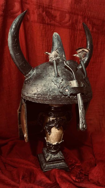 MİĞFER DETAYLI İŞÇİLİKLİ BOYNUZLU DERİLİ YAZILI ESKİ ÜRÜNDÜR başlıklı ürün, Antika-Koleksiyon, Hobi-Sanat > Retro-Vintage Tekstil, Elişi-El Emeği > Diğer kategorisinde İkinci El olarak satışa sunulmuştur.