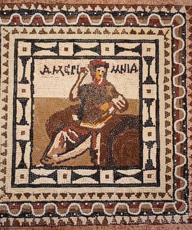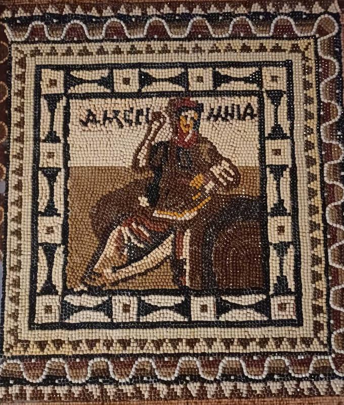 MİKRO ÖLÇÜLERDEKİ KRİSTAL MOZAİK TAŞLARLA İŞLENMİŞ, ARKEOLOJİK MOZAİK TABLET