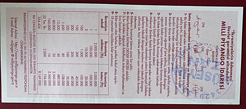 MİLLİ PİYANGO 19 OCAK 20123ORGAN BAĞIŞINDA BULUNUN BİR UMUTTA SİZ OLUN ÇEYREK BİLET (S) NOT: Resimlere dikkat ederek piyango biletlerini sipariş ediniz * Sitemizde satışa sunulan ürünler aksi belirtilmedikçe 2. eldir. * Ürünler koleksiyon amaçlıdır, tam olarak kullanım amacınıza uygun olmayabilir. * Ürün açıklamaları dikkatle okunmalı ve fotoğrafları incelenmelidir.(Ürün fotoğrafları ürünün hakiki rengini, tonunu göstermeyebilir.) Ürünleri sipariş etmeden önce resimleri incelemeyi unutmayın.. Diğer Ürünlerimiz için Mağazamızı ziyaret edebilirsiniz..