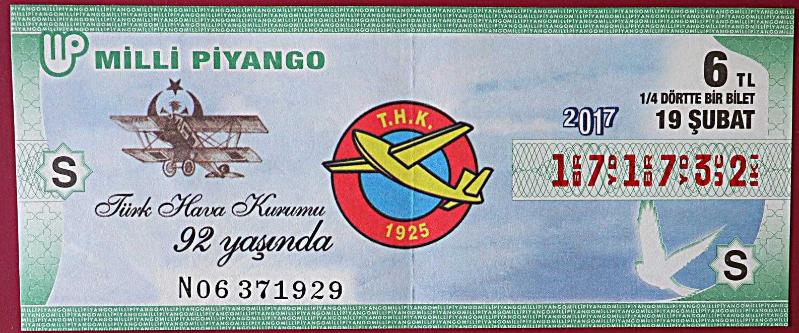 MİLLİ PİYANGO 19 ŞUBAT TÜRK HAVA KURUMU 92 YAŞINDA ÇEYREK BİLET (s) NOT KAT İZİ VAR, 4 gün önce satışa sunulmuştur.