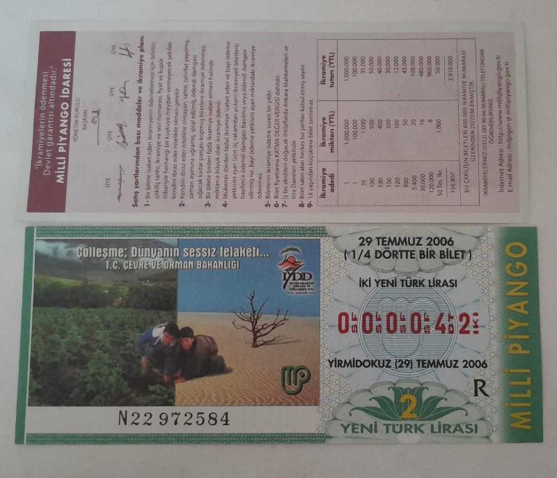 MİLLİ PİYANGO 29 TEMMUZ 2006 ÇEYREK BİLET 000042 KAT İZİ MÜHÜR YOK, en son 6 gün önce güncellenmiştir.