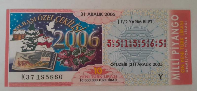 MİLLİ PİYANGO 31 ARALIK 2005 YARIM BİLET 3513565, en son 6 gün önce güncellenmiştir.
