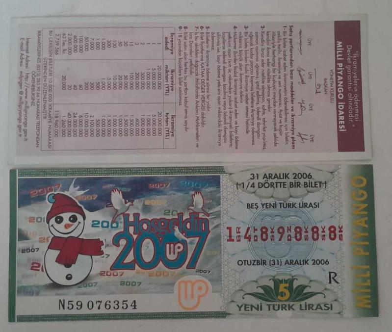 MİLLİ PİYANGO 31 ARALIK 2006 ÇEYREK BİLET 1489888 KAT İZİ MÜHÜR YOK, en son 6 gün önce güncellenmiştir.