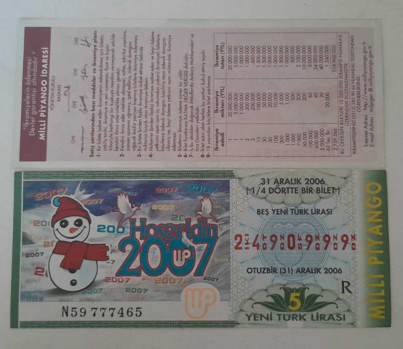 MİLLİ PİYANGO 31 ARALIK 2006 ÇEYREK BİLET 2490999 KAT İZİ MÜHÜR YOK, en son 6 gün önce güncellenmiştir.