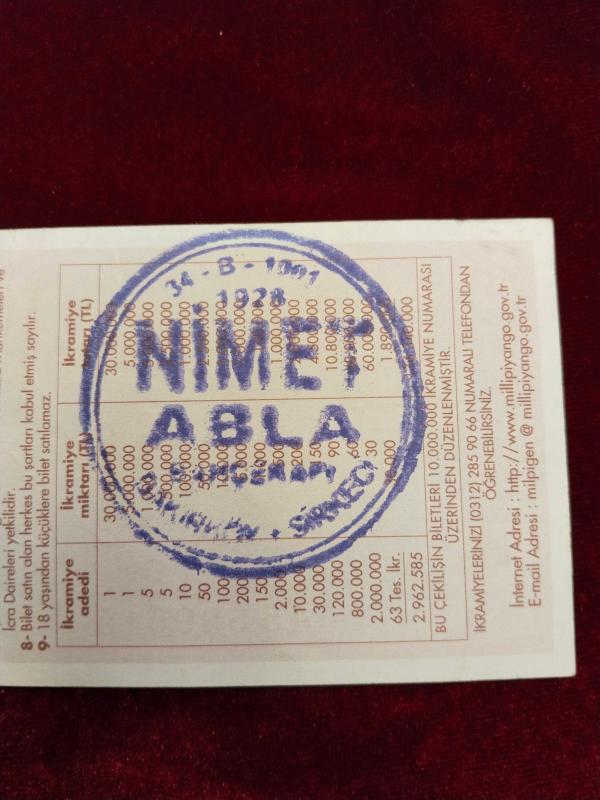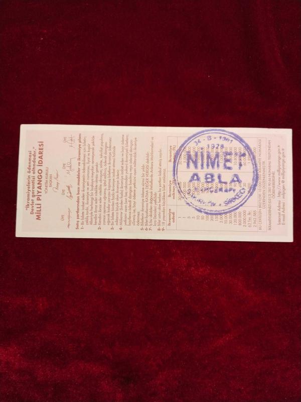 MİLLİ PİYANGO 31 ARALIK 2009 YILBAŞI ÇEYREK BİLET NİMET ABLA DAMGALI PİYANGO BİLETİ 2020, en son bir ay önce güncellenmiştir.