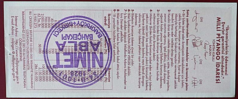Efemera, Müzik, Sinema Belge ve Evraklar Piyango