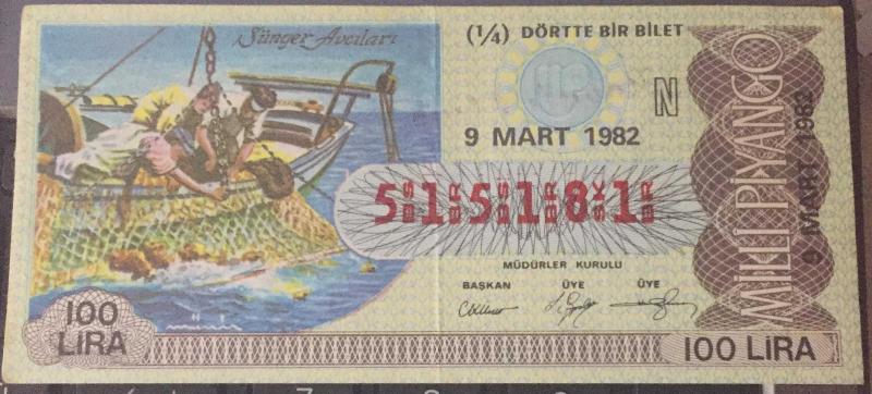 MİLLİ PİYANGO.9.MART.1982.BALIKÇILAR .(N)ÇEYREK, bir ay önce satışa sunulmuştur.