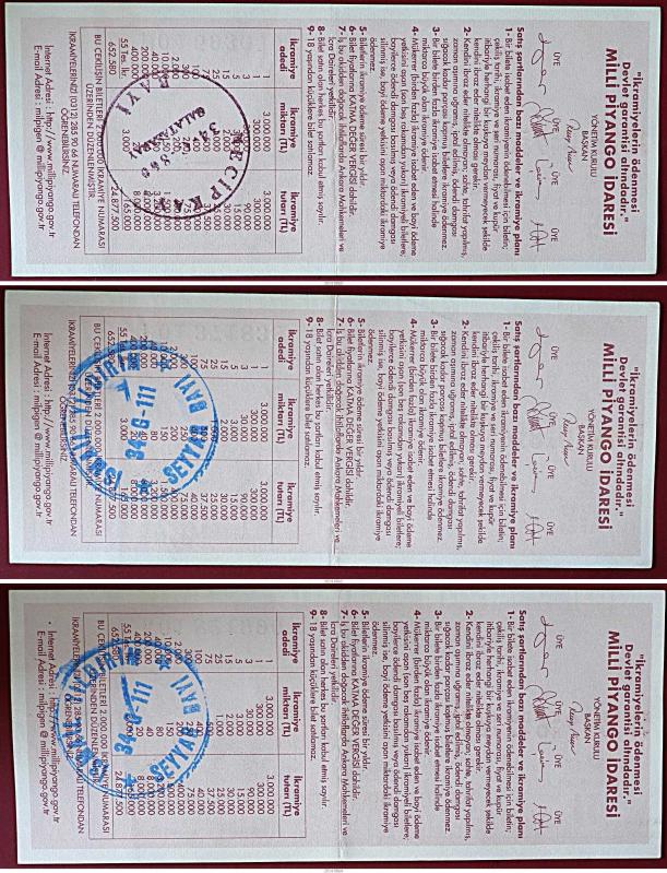 MİLLİ PİYANGO 9 OCAK 2014 SEVDİKLERİNİ DÜŞÜN HIZI DÜŞÜR TAM YARIM ÇEYREK BİLETLER (TYU) NOT: Resimlere dikkat ederek piyango biletlerini sipariş ediniz * Sitemizde satışa sunulan ürünler aksi belirtilmedikçe 2. eldir. * Ürünler koleksiyon amaçlıdır, tam olarak kullanım amacınıza uygun olmayabilir. * Ürün açıklamaları dikkatle okunmalı ve fotoğrafları incelenmelidir.(Ürün fotoğrafları ürünün hakiki rengini, tonunu göstermeyebilir.) Ürünleri sipariş etmeden önce resimleri incelemeyi unutmayın.. Diğer Ürünlerimiz için Mağazamızı ziyaret edebilirsiniz..