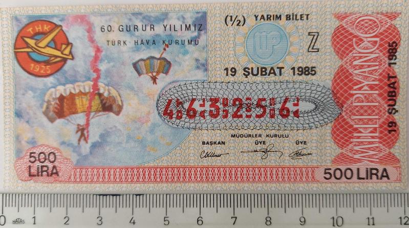 MİLLİ PİYANGO YARIM BİLET 19 ŞUBAT 1985 TARİHLİ TÜRK HAVA KURUMU TEMALI Z HARFİ 463256 NUMARALI ÇOK NADİR, en son 7 ay önce güncellenmiştir.