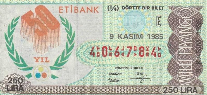 9 KASIM 1985 ETİBANK 50,YIL ÇEYREK BİLET
