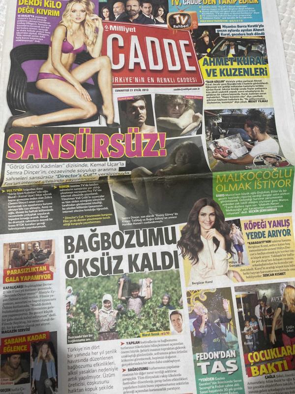 MİLLİYET CADDE GAZETESİ DOĞUM GÜNÜ GAZETESİ - 21 EYLÜL 2013 -Serkan Altunorak-Hülya Darcan-Bergüzar Korel-Çağla Şikel-Kuzey-Mesut Yılmaz-Kemal Uçar-Semra Dinçer-Barış Manço-Sarp Levendoğlu-Ayşe Tolga-Murat Bozok-Gökçe Bahadır-Fedon-Sezen Aksu-Ayşe Kucuroğlu-Kerem Alışık-Emre Kınay-Gökhan Türkmen-Tuvana Türkay-Alper Kul-Kenan İmirzalıoğlu-Kaan Urgancıoğlu-Ayşegül Aldinç-Melis Birkan-Kenan Ece-Ayşe Hatun Önal-Nebil Özgentürk-Gillian Anderson-Ben Affleck-Gemma Arterton-Justin Timberlake-Ziya Saylan-Angelina Jolie-Betty Ford-İsmail Küçükkaya-Senem Aydın-Hüseyin Dinçel-Sercan Kısmet-Gürkan Uygun-Serhat Hakeri-Begüm Birgören-Merve Topçuoğlu Demir-Taner Tuncay-Lütfü Başar-Tanem Sivar-Kenan Ece-Gökçe Bahadır-Fatih Artman-Kutsi-Tansel Öngel-Elçin Sangu-Eda Ece-Neil Patrick Harris-Ezgi Mola-Birce Akalay-İsmail Hacıoğlu-Barış Arduç-Gizem Karaca-Sinem Koba— Görüş Günü Kadınları-Kelebeğin Rüyası-Aşk-Kalp Atışı-Kaçak-Galip Derviş-Kurtlar Vadisi-Çalar Saat-Veep-Yes Prime Minister-The Wedding Band adlı eser, Kitap > Süreli Yayınlar > Gazeteler > Türkiye > Genel > Günlük kategorisinde İkinci El olarak satıştadır.