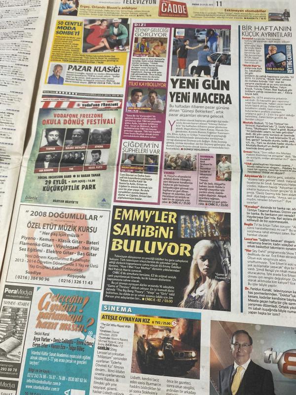 MİLLİYET CADDE GAZETESİ DOĞUM GÜNÜ GAZETESİ - 22 EYLÜL 2013 - Hazal Kaya - Nebahat Çehre - Mehmet Ali Erbil - Ivana Sert - Gülben Ergen - Esra Erol - Özge Uzun - Işıl Reçber - Oktay Derelioğlu - Özen Yula - Barış Kılıç - Rafet El Roman - Mehmet A. Eroğlu - Şeref Gürpınar - Tuba Ünsal - Ece Sükan - Defne Samyeli - Şükrü Avşar - Gülse Birsel - Selin Şurmeli - Devrim Eğin - Seda Şurmeli - Eda Eğin - Eda Şurmeli - Sinan Aydın - Sibel Turnagöl - Şükrü Avşar - Şükrü Avşar - Saffet Ulusoy - Merve Keten - Lara Türker - Hazal çok hırslı - Ayran masası olsun - Şimdi okullu olduk - 7 yıllık yasağı vip minibüsle deldi - Rock’ın büyük babası - Görüntü var ses yok - Şiirsel soyutlama sergisi - Yeni gün yeni macera - Emmy’ler sahibini buluyor - Çiğdem’in şüpheleri var - Tilki kayboluyor - Zeynep geleceği görüyor - Bir haftanın küçük ayrıntıları - Şimdi nerede görüldü - O konuya girmeyelim - Şimdilik sadece albüm - Erkeklerin kabusu kellik - Saçı ve cildi besleyen gıdalar adlı eser, Kitap > Süreli Yayınlar > Gazeteler > Türkiye > Genel > Günlük kategorisinde İkinci El olarak satıştadır.