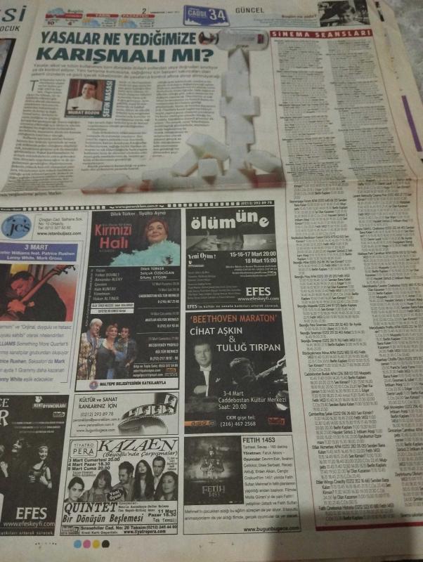 MİLLİYET CADDE GAZETESİ DOĞUM GÜNÜ GAZETESİ -3 Mart 2012- burlesk kraliçesi- Mesut yılmaz-aşkımızı kimse bitiremez-adriana lima- Victoria's Secret- sürpriz ilişki-ne Mutlu sana-uzay Heparı- Rumeli Hisarı- ali Sunal- sarp Apak kıza çizgi Hakan meriçliler- kanal d-yalan dünya-yapı Kredi world-iyi olan kazansın- the means war- ayakkabıdan sesapel tahlili- Acun ılıcalı-ezgi Mola- berrak tüzünataç-ekin türkmen-murat dalkılıç-hatice arslan-hande Soral- jennifer lopez-mehmet Ali Birand- yasalar ne yediğimize karışmalı mı- tarlabaşını unuttuk mu-senem Aydın- kırmızı halı-ölümüne-cihad aşkın-tuluğu tırpan-beethoven maraton- kraliçe Lear-kazaen-mardin mardin olalı-milliyetemlak-triko Mısırlı- Melek ile şeytan yer değiştirdikse çizgi çengel bulmaca- deniz çakır-ibrahim çelikkoluk'ta çizgi Mahir günşiray-ali İhsan- Bir erkek bir kadın-iffet- demet evgar-emre Karayel- demirören adlı eser, Kitap > Süreli Yayınlar > Gazeteler > Türkiye > Genel > Günlük kategorisinde İkinci El olarak satıştadır.