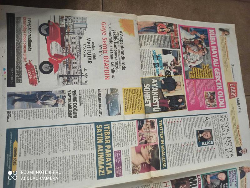 MİLLİYET CADDE GAZETESİ DOĞUM GÜNÜ GAZETESİ -6 Kasım 2013-doğum günü-fatih aksoy-sercan kısmet-fenerbahçe-milliyet cadde-çalıkuşu-demet akalın-cem aydın-Nihat yalçın-ali Eyüboğlu -Twitter'ın kraliçesi-magazin servisi-arabasına kavuştu-seçkin Şenvardar-mert tutar-sakarya-kanal d-recep ivedik-dizi-halit ergenç-muhteşem yüzyıl-şebnem-meksika'dan sevgiler-sinema-küçük prens-bellona-milliyet cadde-tok-istanbul-çağdaş erTuna - son durum-tahtın sahibi belli oldu- adlı eser, Kitap > Süreli Yayınlar > Gazeteler > Türkiye > Genel > Günlük kategorisinde İkinci El olarak satıştadır.
