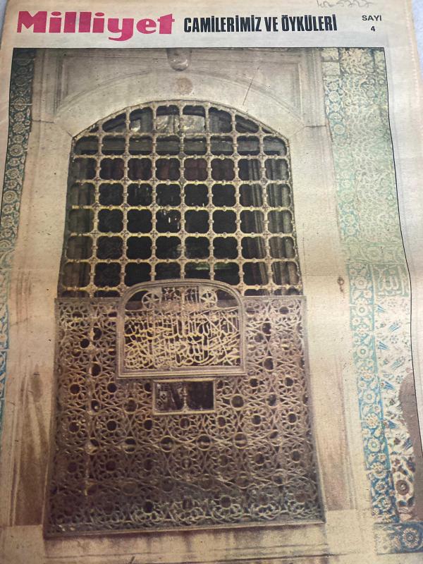 MİLLİYET CAMİLERİMİZ VE ÖYKÜLERİ GAZETESİ DOĞUM GÜNÜ HEDİYESİ -Camilerimiz ve öyküleri-cami pencerelerini süsleyen vitray-Eyüp Sultan cami-Yalçın Çınar-Metin Sözen-Eyüp Sultan Camii çınar ağacı ve güvercinler-Eyüp Sultan türbesi ve türbeyi süsleyen Çinliler-yeni caminin içten görünüşü-Eyüp Sultan Camisi’nin içi-Eyüp Sultan Camii’nin dış görünümü-yeni cami kubbelerinin iç görünümü-kubbeye renk veren eski yazı ve süslemeler-safiye Sultan’dan Turhan sultana-kubbe bağlantılarında eski yazı ve süsleme-yenicaminin dış görünümü-Cumhuriyet öncesi Galata köprüsü ve yeni cami-sayfa sayısı sekiz adlı eser Türkçe dilindedir. Eserin içeriğinde Türkçe dilinde bölümlere de yer verilmektedir.