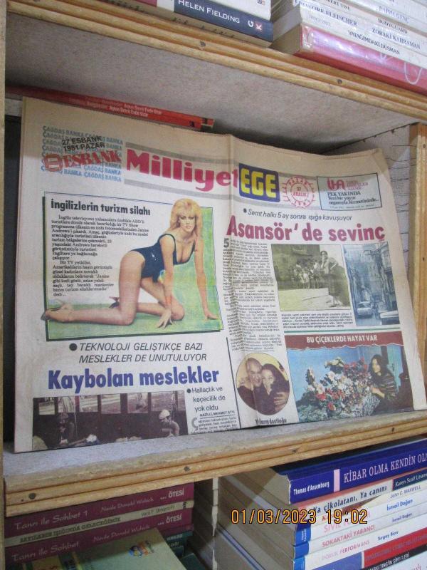 MİLLİYET EGE GAZETESİ 27 ARALIK 1981 ASANSÖR'DE SEVİNÇ KAYBOLAN MESLEKLER HALLAÇLIK VE KEÇECİLİK DE YOK OLDU FERRAN ÖĞRETMENİN TEK TUTKUSU ÇİÇEKLER..4 SAYFA..ÇOK TEMİZ.