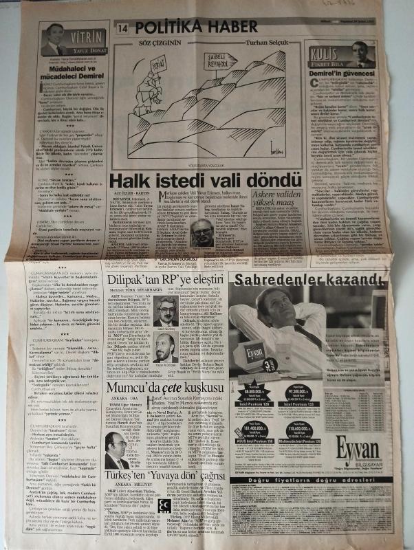 MİLLİYET GAZETESİ-24 Şubat 1997-Yavuz donat-Fikret bila-Kuli-Süleyman Demirel’in güvencesi-müdahaleci ve mücadeleci Süleyman Demirel-halk istedi vali döndü-Yavuz erkmen-İsmet Tabaş-Arif üçler-sacit Gün bey-Abdurrahman dilipak-Mehmet Türk-Alparslan Türkeş-Hanefi Avcı-Uğur mumcu-neval Boz-eyvan bilgisayar-ışık Sigorta-sayfa sayısı iki