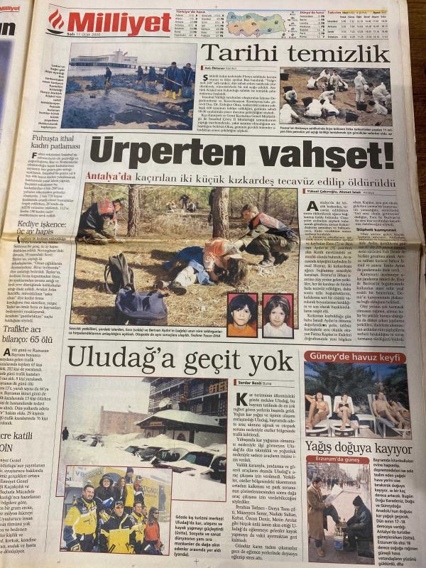 MİLLİYET GAZETESİ DOĞUM GÜNÜ HEDİYESİ - 11 OCAK 2000 - TAM TAKIM 28 SAYFADIR -Fikret Bila-Güngör Cıvaoğlu-Sami Kohen-Halil Özer-Vedat Danacı-Bilal Meşe-Gürcan Bilgiç-Metin Oktay-Ahmet Dursun-Atilla Gökçe-Mesut Yavuz-Serhat Ayvan-Yasemin Congar-Tülin Tosun-Yüksel Çakırloğlu-Ahmet Işık-Ali Oktener-Nilgün Cerrahoğlu-Serdar Benli Apo için gizli oturum-Topla fişi sık dişi-KKTC-AB teması-Kola içti hayatı değişti-Fener’de huzur yok-Bir zamanlar korkuydu-Tarihi temizlik-Ürperten vahşet-Uludağ’a geçit yok-İki Türkiye’ye bedel birleşme MHP’nin gizli oturum önerisi mecliste gündeme geldi-Vergi iadesinde çalışanları hayal kırıklığı bekliyor-Grip bayram yaptı-Tarkan’a hücum-KKTC-AB temasında yeni gelişme yaşandı-Fenerbahçe’de transfer sıkıntısı yaşandı-Zeman tedirgin-Ahmet Dursun’un performansı değerlendirildi-Deplasman maçları konuk takımlar için puan umudu oldu-Antalya’da kaçırılan iki küçük kardeş tecavüz edilip öldürüldü-Uludağ kar nedeniyle kapandı-Erzurum’da güneş Güney’de havuz keyfi yaşan, Ali Naci Karacan tarafından kaleme alınmıştır. MİLLİYET GAZETESİ DOĞUM GÜNÜ HEDİYESİ - 11 OCAK 2000 - TAM TAKIM 28 SAYFADIR -Fikret Bila-Güngör Cıvaoğlu-Sami Kohen-Halil Özer-Vedat Danacı-Bilal Meşe-Gürcan Bilgiç-Metin Oktay-Ahmet Dursun-Atilla Gökçe-Mesut Yavuz-Serhat Ayvan-Yasemin Congar-Tülin Tosun-Yüksel Çakırloğlu-Ahmet Işık-Ali Oktener-Nilgün Cerrahoğlu-Serdar Benli Apo için gizli oturum-Topla fişi sık dişi-KKTC-AB teması-Kola içti hayatı değişti-Fener’de huzur yok-Bir zamanlar korkuydu-Tarihi temizlik-Ürperten vahşet-Uludağ’a geçit yok-İki Türkiye’ye bedel birleşme MHP’nin gizli oturum önerisi mecliste gündeme geldi-Vergi iadesinde çalışanları hayal kırıklığı bekliyor-Grip bayram yaptı-Tarkan’a hücum-KKTC-AB temasında yeni gelişme yaşandı-Fenerbahçe’de transfer sıkıntısı yaşandı-Zeman tedirgin-Ahmet Dursun’un performansı değerlendirildi-Deplasman maçları konuk takımlar için puan umudu oldu-Antalya’da kaçırılan iki küçük kardeş tecavüz edilip öldürüldü-Uludağ kar nedeniyle kapandı-Erzurum’da güneş Güney’de havuz keyfi yaşan adlı eser Türkçe dilindedir.