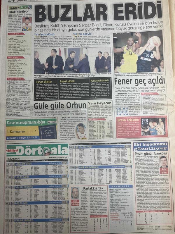 MİLLİYET GAZETESİ DOĞUM GÜNÜ HEDİYESİ - 14 KASIM 2001 -TAM TAKIM 28 SAYFADIR -Ahmet Tekin-Güneri Cıvaoğlu-Hasan Cemal-Mehmet Y. Yılmaz-Murat Saygı-Ahmet Tulgar-Yusuf İslam-Nurdan Akıner-Attila Gökçe-Fatih Terim-Lucescu-Mondragon-Ümit Milli Takımı-Ergün Penbe-Hakan Şükür-Arif Erdem-Hasan Şaş-Ömer Üründül-Erdoğan Şenay-Murat Saygı-Harun Günek-Hanifi Güney-Garbis Özatay-Gizem Özdilli-Benhan Duygu-Daniel Colagrossi-İlaç gibi-Taliban dağa halk berbere-Hedef Armutlu ileri-Cep kumarı iptal edildi-Zap yapmak refleks oldu-Viagra bisiklete bindi-UFO heyecanı-Hollanda’dan çöpçü geldi-Seksi açılış-İstanbul aramızda kalsın-Terim’e dön çağrısı-Galip geldik ama barajı geçemedik-Ümitler’e yetmedi-Haydi güneşin doğduğu yere-Ağır toplar göreve-Zaplamak bende bir refleks oldu-Namazdan çıkıp imzaya koştu, Ali Naci Karacan tarafından kaleme alınmıştır. MİLLİYET GAZETESİ DOĞUM GÜNÜ HEDİYESİ - 14 KASIM 2001 -TAM TAKIM 28 SAYFADIR -Ahmet Tekin-Güneri Cıvaoğlu-Hasan Cemal-Mehmet Y. Yılmaz-Murat Saygı-Ahmet Tulgar-Yusuf İslam-Nurdan Akıner-Attila Gökçe-Fatih Terim-Lucescu-Mondragon-Ümit Milli Takımı-Ergün Penbe-Hakan Şükür-Arif Erdem-Hasan Şaş-Ömer Üründül-Erdoğan Şenay-Murat Saygı-Harun Günek-Hanifi Güney-Garbis Özatay-Gizem Özdilli-Benhan Duygu-Daniel Colagrossi-İlaç gibi-Taliban dağa halk berbere-Hedef Armutlu ileri-Cep kumarı iptal edildi-Zap yapmak refleks oldu-Viagra bisiklete bindi-UFO heyecanı-Hollanda’dan çöpçü geldi-Seksi açılış-İstanbul aramızda kalsın-Terim’e dön çağrısı-Galip geldik ama barajı geçemedik-Ümitler’e yetmedi-Haydi güneşin doğduğu yere-Ağır toplar göreve-Zaplamak bende bir refleks oldu-Namazdan çıkıp imzaya koştu adlı eser Türkçe dilindedir.