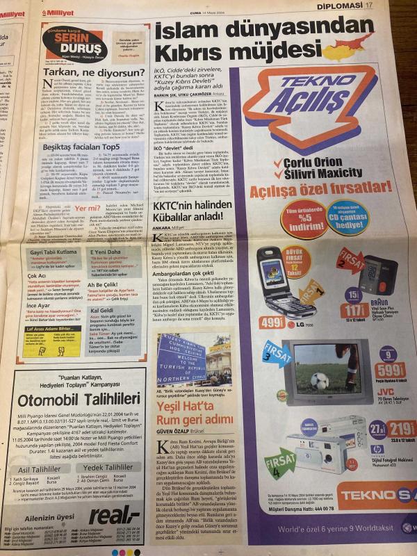 MİLLİYET GAZETESİ DOĞUM GÜNÜ HEDİYESİ - 14 MAYIS 2004 -TAM TAKIM 38 SAYFADIR -Hülya Keskin-Zekeriya Sarıkaya-Recep Tayyip Erdoğan-Mehmet Ali Şahin-Mehmet Ali Şahin-Daumm-Mehmet Topal-Tuncay Şanlı-Yıldıray Baştürk-Hagi-Fikret Orman-Affan Keçeci-Erol Kaynar-Serdar Bilgili-Yıldırım Demirören-Lucescu-Pancu-İbrahim Üzülmez-Ümit Davala-Utku Çakırözer-Elçin Ergün-Sami Kohen-Yasemin Çongar-Rumsfeld-Ricardo Sanchez-Alper Mestçi-Hüseyin Orak-Tarkan-Barkın Şık-Güven Özalp-Ercan Arslan-Taha Akyol-Şakir Aydın-Nasuh Mahruki-Sibel Eraslan-Yüce Divan-Ahmet Kaya-Nurseli İdiz-Sertab Erener-Sonel Demirtaş-Hülya Keskin-Fatma Noyan-Ali Şahin-Erol Karaborsacı-Hasan Cemal-Mehmet Y. Yılmaz-Güngör Cıvaoğlu-Hasan Cemal-İM DADA ŞAHİN YETİŞTİ-Daumm’dan taviz yok-Yıldıray’dan şok haber-Kazanını desteklerim-Afganistan’a Türk askeri-Sorgu mu işkence mi?-İslam dünyasından Kıbrıs müjdesi-Haliç’te balık hayali boğuldu-Bir mesajla hayat kurtarın-Bak kim geliyor-Yasa böyle çıktı adlı eser, Kitap > Süreli Yayınlar > Gazeteler > Türkiye > Genel > Günlük kategorisinde İkinci El olarak satıştadır.