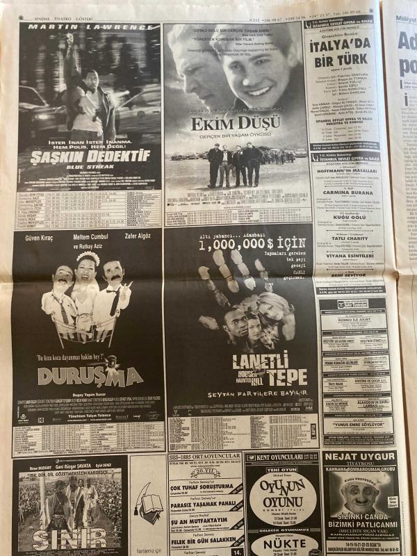 MİLLİYET GAZETESİ DOĞUM GÜNÜ HEDİYESİ - 14 OCAK 2000 - TAM TAKIM 30 SAYFADIR -Ecevit-Apo-Fikret Bila-Serpil Cevikcan-Dervisoglu-Bahceli-Nedim Sener-Hillary-Org. Kivrikoglu-Mustafa Dogan-Briegel-Gurcan Bilgic-Dogan Kologlu-Erdogan Senay-Cemal Eren-Ersun Yanal-Terim-K. Hakan-Hakan Sukur-Okan-Emre-Suat-Ertugrul-Dilaver Onaran-Tuna Yavuz-Lale Manco-Ahmet Mete Iskara-Gonul Hanbay-Serhat Oguz-Hugh Grant-James Caan-Jeanne Tripplehorn-Sharon Stone-Andie Macdowell-Albert Brooks-Jeff Bridges-Pierce Brosnan-Sophie Marceau-Robert Carlyle-Denise Richards-Robbie Coltrane-Judi Dench-John Cleese-Desmond Llewelyn-Maria Grazia Cucinotta-Colin Salmon-Samantha Bond-Idam protokolu-10 trilyonluk sahte fis-Balik agina baris takildi-Dertliler derman pesinde-Kongre acmaza girdi-Profesyonel yonetici devri-Bes ozel adam-Karadeniz derbisi-Tatile gidenler Sidney’le dondu-Oku bakiyim: Deprem-Belali ask-Dunya yetmez 007-Seksi peri adlı eser, Kitap > Süreli Yayınlar > Gazeteler > Türkiye > Genel > Günlük kategorisinde İkinci El olarak satıştadır.
