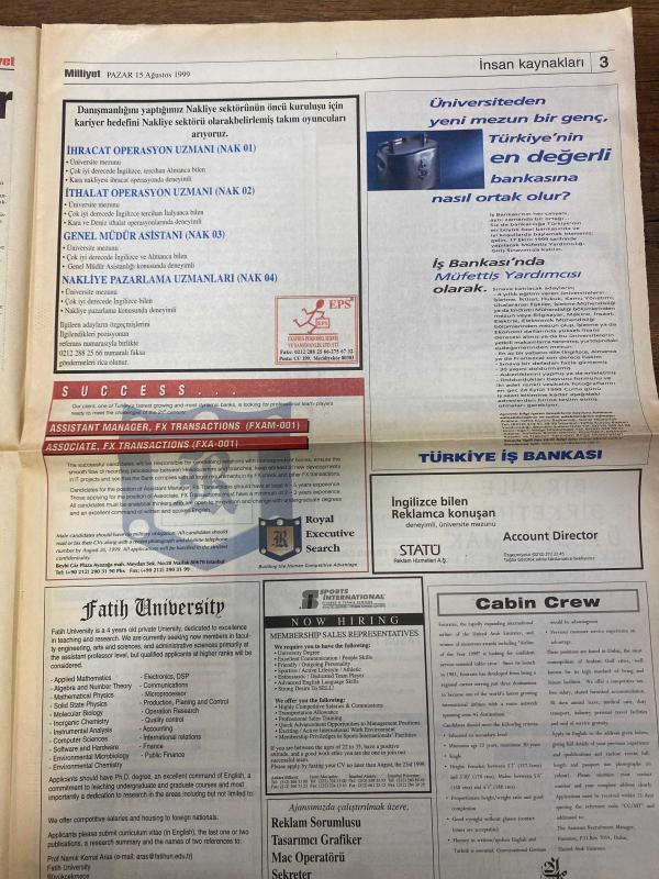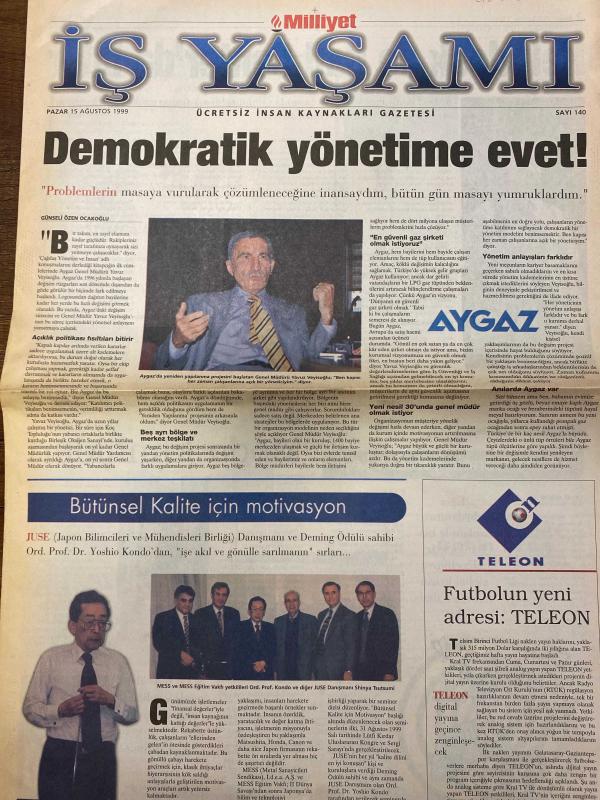 MİLLİYET GAZETESİ DOĞUM GÜNÜ HEDİYESİ - 15 AĞUSTOS 1999 -Yusuf Vezirhan-Günseli Özen Ocakoğlu-Yoshio Kondo-Shinya Tsutsumi-Vedat Akman-Murat Keleştemur-Özlem Tosun-Ulaş Bıçakçı-Güldep Kırtıkoğlu-Burçin Demirtaş-Fatih Aksoy-Bülent Göncü-Turgut Uzer Demokratik yönetime evet-Bütünsel Kalite için motivasyon-Futbolun yeni adresi: TELEON-Helpdesk ve Call Center’da lider-Krizde teorinin yeniden keşfi-Moda kimlikleri-Kurumlaşmak mı yoksa “kurum”laşmak mı?-İş yapayım derken göz çıkarmayın-Şimdi televizyonculuk çok moda-Ortaklık uyumu nasıl ölçülür?-Vizyona evet, planlamaya hayır çizer: E. Büyükyıldırım-karikatür: gözlükle parayı incelerken birbirini dürten iki adam-karikatür: televizyonu tamir eden teknisyen-karikatür: kamerayla çekim yapan sunucu adlı eser Türkçe dilindedir. Eserin içeriğinde Türkçe dilinde bölümlere de yer verilmektedir.