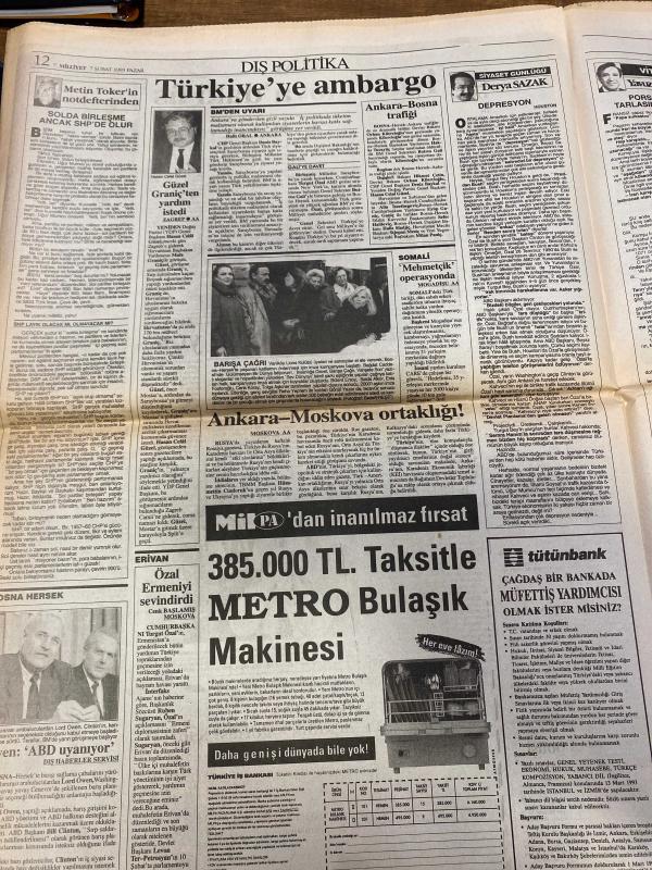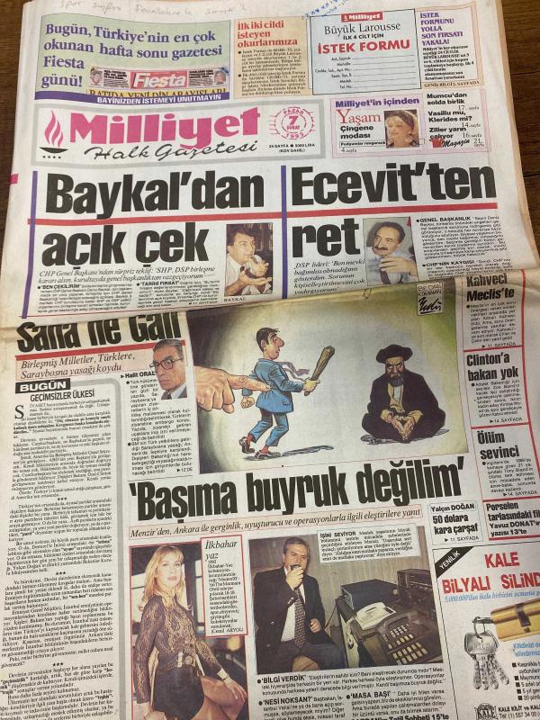 MİLLİYET GAZETESİ DOĞUM GÜNÜ HEDİYESİ - 17 ŞUBAT 1993 -SADECE 24 SAYFADIR -Deniz Baykal-Bülent Ecevit-Halit Oral-Hikmet Çetin-Yalçın Doğan-Tanju Çolak-İslam Yücel-Erdoğan Şenay-Ömer Üründül-Orhan Boran-Ayşen Kırca-Elif İlker-Mustafa Yalın-Aysun Kocadağ-Necdet Menzir-Tolga Şardan-Ali Sirmen-Ercan Altazlı Baykal’dan açık çek-Ecevit’ten ret-Basıma buyruk değilim-F.Bahçe nefes kesti-Trabzon kaza yaptı-Oğuz ile Novak tartıştı-TV’de neşeli pazar-Daha iyi bilen varsa gelsin-Kamhi’nin tetikçisi Kuleli’den-Görünmeyen Adamın Maceraları-Güzel ve Çirkin-Jurassic Park-Vegas’ta Balayı-Zehirli Sarmaşık-Birkaç İyi Adam-Bodyguard-Köhne Bizans-Madonna-Evde Tek Başına 2-Harrison Ford Patriot Games CHP Genel Başkanı Baykal SHP’ye birleşme çağrısı yaptı-DSP lideri Bülent Ecevit birleşmeye yanaşmadı-Menzir uyuşturucu operasyonlarıyla ilgili eleştirilere yanıt verdi-Sarıyer Fenerbahçe karşısında mağlup oldu-İkinci yarıda çabaları sonuç verdi-Orhan Boran TV programı sundu-Sibel Asna ve Ayşen Kırca televizyo, Ali Naci Karacan tarafından kaleme alınmıştır. MİLLİYET GAZETESİ DOĞUM GÜNÜ HEDİYESİ - 17 ŞUBAT 1993 -SADECE 24 SAYFADIR -Deniz Baykal-Bülent Ecevit-Halit Oral-Hikmet Çetin-Yalçın Doğan-Tanju Çolak-İslam Yücel-Erdoğan Şenay-Ömer Üründül-Orhan Boran-Ayşen Kırca-Elif İlker-Mustafa Yalın-Aysun Kocadağ-Necdet Menzir-Tolga Şardan-Ali Sirmen-Ercan Altazlı Baykal’dan açık çek-Ecevit’ten ret-Basıma buyruk değilim-F.Bahçe nefes kesti-Trabzon kaza yaptı-Oğuz ile Novak tartıştı-TV’de neşeli pazar-Daha iyi bilen varsa gelsin-Kamhi’nin tetikçisi Kuleli’den-Görünmeyen Adamın Maceraları-Güzel ve Çirkin-Jurassic Park-Vegas’ta Balayı-Zehirli Sarmaşık-Birkaç İyi Adam-Bodyguard-Köhne Bizans-Madonna-Evde Tek Başına 2-Harrison Ford Patriot Games CHP Genel Başkanı Baykal SHP’ye birleşme çağrısı yaptı-DSP lideri Bülent Ecevit birleşmeye yanaşmadı-Menzir uyuşturucu operasyonlarıyla ilgili eleştirilere yanıt verdi-Sarıyer Fenerbahçe karşısında mağlup oldu-İkinci yarıda çabaları sonuç verdi-Orhan Boran TV programı sundu-Sibel Asna ve Ayşen Kırca televizyo adlı eser Türkçe dilindedir.