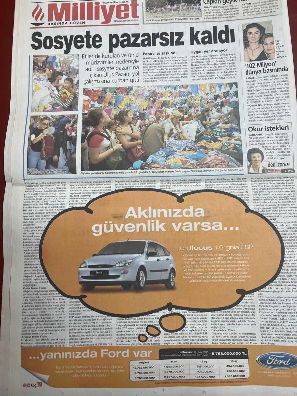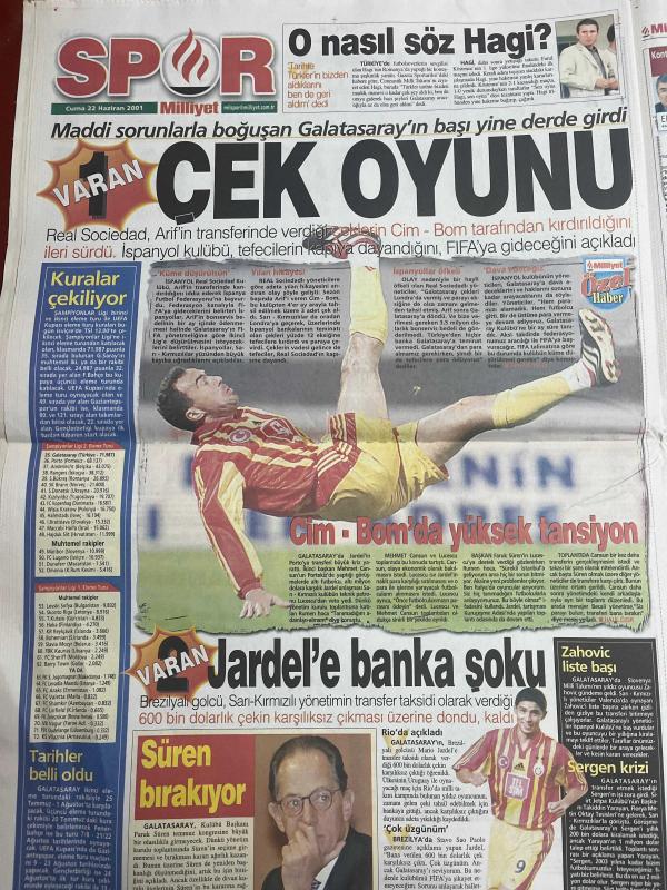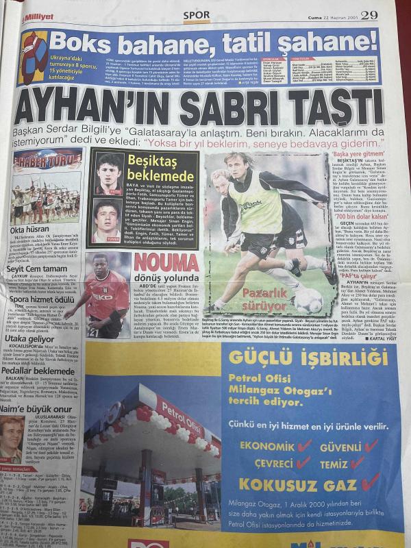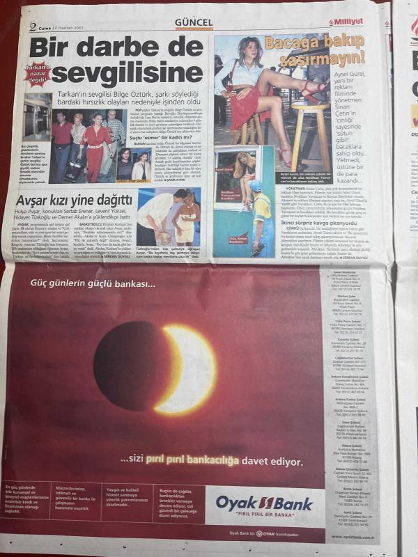 MİLLİYET GAZETESİ DOĞUM GÜNÜ HEDİYESİ - 22 HAZİRAN 2001 -TAM TAKIM 32 SAYFADIR -Necmettin Erbakan-Abdullah Karaoğlan-Fikret Bila-Hasan Cemal-Güneri Cıvaoğlu-Hakan Şükür-Erdoğan Şenay-Hagi-Süren-Arif-Jardel-Zahovic-Sergen Yalçın-Nouma-Ayhan Serkan Serhat-Naim Süleymanoğlu-Tarkan-Bilge Öztürk-Hülya Avşar-Sezen Duygu-Aysel Gürel-Sinan Çetin-Nihan Abla Kenan Baykent-Sadece levha değişir-Kafamızda deprem var-Yıldırım nazlanıyor-Hakan işi bitti-Gençlere gözaltı-Çek oyunu-Cim Bom’da yüksek tansiyon-Jardel’e banka şoku-Ayhan’ın sabrı taştı-Beşiktaş beklemede-Bir darbe de sevgilisine-Bacağa bakıp şaşırmayın-Avşar kızı yine dağıttı, Ali Naci Karacan tarafından kaleme alınmıştır. MİLLİYET GAZETESİ DOĞUM GÜNÜ HEDİYESİ - 22 HAZİRAN 2001 -TAM TAKIM 32 SAYFADIR -Necmettin Erbakan-Abdullah Karaoğlan-Fikret Bila-Hasan Cemal-Güneri Cıvaoğlu-Hakan Şükür-Erdoğan Şenay-Hagi-Süren-Arif-Jardel-Zahovic-Sergen Yalçın-Nouma-Ayhan Serkan Serhat-Naim Süleymanoğlu-Tarkan-Bilge Öztürk-Hülya Avşar-Sezen Duygu-Aysel Gürel-Sinan Çetin-Nihan Abla Kenan Baykent-Sadece levha değişir-Kafamızda deprem var-Yıldırım nazlanıyor-Hakan işi bitti-Gençlere gözaltı-Çek oyunu-Cim Bom’da yüksek tansiyon-Jardel’e banka şoku-Ayhan’ın sabrı taştı-Beşiktaş beklemede-Bir darbe de sevgilisine-Bacağa bakıp şaşırmayın-Avşar kızı yine dağıttı adlı eser Türkçe dilindedir.