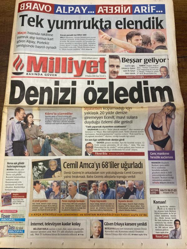 MİLLİYET GAZETESİ DOĞUM GÜNÜ HEDİYESİ - 25 HAZİRAN 2000 -TAM TAKIM 40 SAYFADIR -Alpay-Arif-Bessar-Günneri Civaoğlu-Fikret Bila-Cemil Gezmiş-Deniz Gezmiş-Ayça Atikoğlu-Güntan Mavıgözlü-Hasan Cemal-Mustafa Denizli-Halil Özer-Tayfur-Nuno Gomes-Hakan Şükür-Yaşar Saygı-Vedat Danacı-Ömer Üründül-Doğan Koloğlu-Zeki Çol-Attila Gökçe-Cenk Çelik-Erhan Telli-Kartal Yiğit-Yusuf Kobal-Meral Tamer-Eylem Türk-Arzuhan Doğan Yalçındağ-Hüsamettin Özkan-Bülent Ecevit-Rahmi Koç-Güven Erkaya-Abdullah Doğan-Afşin Yakuboğlu-Popescu-Zamorano-Seedorf-Cemil Amca’yı 68’liler uğurladı-Tek yumrukta elendik-Denizi özledim-Hazin veda-Çok şey öğrenmeliyiz-Penaltıyı bana bırak-Denizli devri bitti-Popescu’ya sarı kart-Scala insafa geldi-Yine mi Hami-TÜSİAD tanıtımda biz de varız-Seyahat acentasının Hindistan vurgunu-Kolay gelsin, Ali Naci Karacan tarafından kaleme alınmıştır. MİLLİYET GAZETESİ DOĞUM GÜNÜ HEDİYESİ - 25 HAZİRAN 2000 -TAM TAKIM 40 SAYFADIR -Alpay-Arif-Bessar-Günneri Civaoğlu-Fikret Bila-Cemil Gezmiş-Deniz Gezmiş-Ayça Atikoğlu-Güntan Mavıgözlü-Hasan Cemal-Mustafa Denizli-Halil Özer-Tayfur-Nuno Gomes-Hakan Şükür-Yaşar Saygı-Vedat Danacı-Ömer Üründül-Doğan Koloğlu-Zeki Çol-Attila Gökçe-Cenk Çelik-Erhan Telli-Kartal Yiğit-Yusuf Kobal-Meral Tamer-Eylem Türk-Arzuhan Doğan Yalçındağ-Hüsamettin Özkan-Bülent Ecevit-Rahmi Koç-Güven Erkaya-Abdullah Doğan-Afşin Yakuboğlu-Popescu-Zamorano-Seedorf-Cemil Amca’yı 68’liler uğurladı-Tek yumrukta elendik-Denizi özledim-Hazin veda-Çok şey öğrenmeliyiz-Penaltıyı bana bırak-Denizli devri bitti-Popescu’ya sarı kart-Scala insafa geldi-Yine mi Hami-TÜSİAD tanıtımda biz de varız-Seyahat acentasının Hindistan vurgunu-Kolay gelsin adlı eser Türkçe dilindedir.