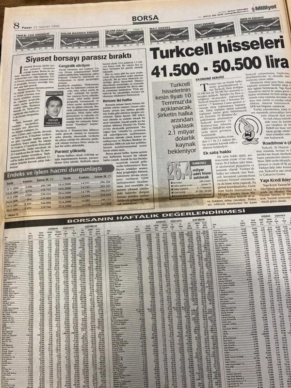 MİLLİYET GAZETESİ DOĞUM GÜNÜ HEDİYESİ - 25 HAZİRAN 2000 -TAM TAKIM 40 SAYFADIR -Alpay-Arif-Bessar-Günneri Civaoğlu-Fikret Bila-Cemil Gezmiş-Deniz Gezmiş-Ayça Atikoğlu-Güntan Mavıgözlü-Hasan Cemal-Mustafa Denizli-Halil Özer-Tayfur-Nuno Gomes-Hakan Şükür-Yaşar Saygı-Vedat Danacı-Ömer Üründül-Doğan Koloğlu-Zeki Çol-Attila Gökçe-Cenk Çelik-Erhan Telli-Kartal Yiğit-Yusuf Kobal-Meral Tamer-Eylem Türk-Arzuhan Doğan Yalçındağ-Hüsamettin Özkan-Bülent Ecevit-Rahmi Koç-Güven Erkaya-Abdullah Doğan-Afşin Yakuboğlu-Popescu-Zamorano-Seedorf-Cemil Amca’yı 68’liler uğurladı-Tek yumrukta elendik-Denizi özledim-Hazin veda-Çok şey öğrenmeliyiz-Penaltıyı bana bırak-Denizli devri bitti-Popescu’ya sarı kart-Scala insafa geldi-Yine mi Hami-TÜSİAD tanıtımda biz de varız-Seyahat acentasının Hindistan vurgunu-Kolay gelsin adlı eser, Kitap > Süreli Yayınlar > Gazeteler > Türkiye > Genel > Günlük kategorisinde İkinci El olarak satıştadır.