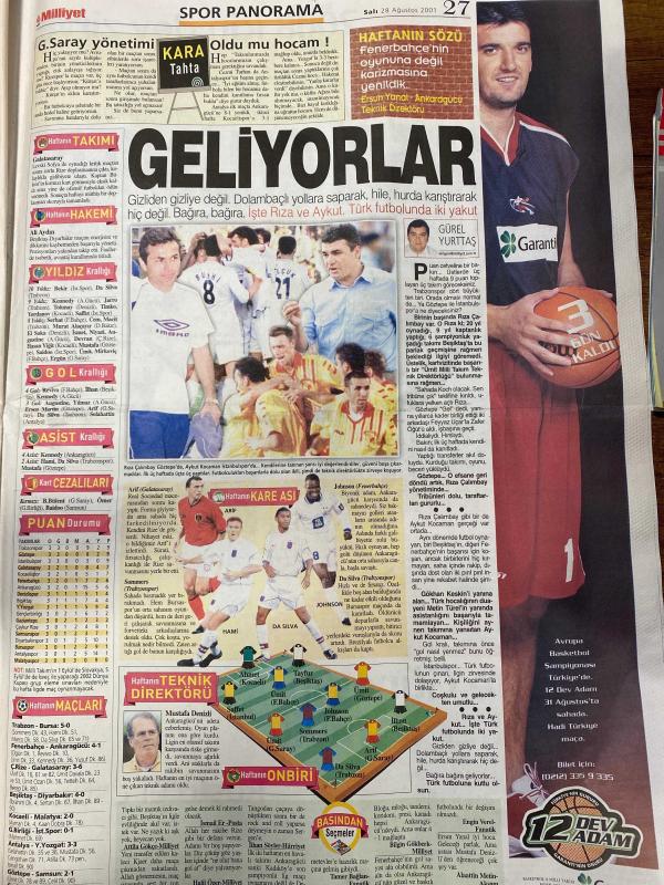 MİLLİYET GAZETESİ DOĞUM GÜNÜ HEDİYESİ - 28 AĞUSTOS 2001 -TAM TAKIM 30 SAYFADIR -Üzeyir Garih-Hasan Cemal-Güneri Cıvaoğlu-Tuncay Özkan-İshak Alaton-Leyla Alaton-Denizli-Emre-Okan-Alpay-Fevzi-Peter Kjær-Nouma-Şenol Güneş-Rüştü-Uğur Meleke-Gürel Yurttaş-Rıza-Aykut-Ersun Yanal-Ali Aydın-Hami-Da Silva-Johnson-Mustafa Denizli-Fuat N.-Hasan N.-Nezih Gürsel-Dinçer Şerefoğlu-Kemal Derviş-Oğuz Saticı-Güngör Uras Kayıp telefon bir askerde-Ve cinayet yerinde bir kadının kan izi bulundu-Özel Haber-Kanlı çuval komedisi-Üzeyir Amca-MOSSAD da katilin peşine düştü-Beyinleri gelişmedi-Kartal, kaleciye doymuyor-Koraç da tamam-İşte Güneş’in zafer formülü-Rüştü el üstünde-Geliyorlar-Gözaltında bana işkence yaptılar-Baba önce kovuldu sonra çağırıldı-Asansörde iade pazarlığı-Borsa şirketlerinde risk arttı Telefon, polisleri katile götürebilir-Boğuşma anında bir kadın vardı-Kadın yaralandı ve cinayeti izledi-2008 için dev zirve-Terim’e eleştiri-Emre-Okan beğenildi-Alpay kahroldu-‘Ağır yük bende’-‘Sempatik d, Ali Naci Karacan tarafından kaleme alınmıştır. MİLLİYET GAZETESİ DOĞUM GÜNÜ HEDİYESİ - 28 AĞUSTOS 2001 -TAM TAKIM 30 SAYFADIR -Üzeyir Garih-Hasan Cemal-Güneri Cıvaoğlu-Tuncay Özkan-İshak Alaton-Leyla Alaton-Denizli-Emre-Okan-Alpay-Fevzi-Peter Kjær-Nouma-Şenol Güneş-Rüştü-Uğur Meleke-Gürel Yurttaş-Rıza-Aykut-Ersun Yanal-Ali Aydın-Hami-Da Silva-Johnson-Mustafa Denizli-Fuat N.-Hasan N.-Nezih Gürsel-Dinçer Şerefoğlu-Kemal Derviş-Oğuz Saticı-Güngör Uras Kayıp telefon bir askerde-Ve cinayet yerinde bir kadının kan izi bulundu-Özel Haber-Kanlı çuval komedisi-Üzeyir Amca-MOSSAD da katilin peşine düştü-Beyinleri gelişmedi-Kartal, kaleciye doymuyor-Koraç da tamam-İşte Güneş’in zafer formülü-Rüştü el üstünde-Geliyorlar-Gözaltında bana işkence yaptılar-Baba önce kovuldu sonra çağırıldı-Asansörde iade pazarlığı-Borsa şirketlerinde risk arttı Telefon, polisleri katile götürebilir-Boğuşma anında bir kadın vardı-Kadın yaralandı ve cinayeti izledi-2008 için dev zirve-Terim’e eleştiri-Emre-Okan beğenildi-Alpay kahroldu-‘Ağır yük bende’-‘Sempatik d adlı eser Türkçe dilindedir.