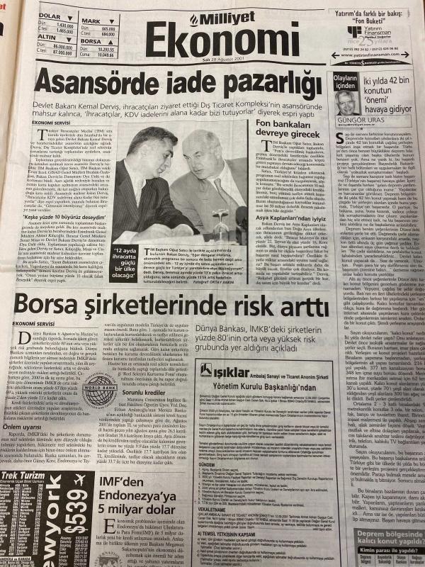 MİLLİYET GAZETESİ DOĞUM GÜNÜ HEDİYESİ - 28 AĞUSTOS 2001 -TAM TAKIM 30 SAYFADIR -Üzeyir Garih-Hasan Cemal-Güneri Cıvaoğlu-Tuncay Özkan-İshak Alaton-Leyla Alaton-Denizli-Emre-Okan-Alpay-Fevzi-Peter Kjær-Nouma-Şenol Güneş-Rüştü-Uğur Meleke-Gürel Yurttaş-Rıza-Aykut-Ersun Yanal-Ali Aydın-Hami-Da Silva-Johnson-Mustafa Denizli-Fuat N.-Hasan N.-Nezih Gürsel-Dinçer Şerefoğlu-Kemal Derviş-Oğuz Saticı-Güngör Uras Kayıp telefon bir askerde-Ve cinayet yerinde bir kadının kan izi bulundu-Özel Haber-Kanlı çuval komedisi-Üzeyir Amca-MOSSAD da katilin peşine düştü-Beyinleri gelişmedi-Kartal, kaleciye doymuyor-Koraç da tamam-İşte Güneş’in zafer formülü-Rüştü el üstünde-Geliyorlar-Gözaltında bana işkence yaptılar-Baba önce kovuldu sonra çağırıldı-Asansörde iade pazarlığı-Borsa şirketlerinde risk arttı Telefon, polisleri katile götürebilir-Boğuşma anında bir kadın vardı-Kadın yaralandı ve cinayeti izledi-2008 için dev zirve-Terim’e eleştiri-Emre-Okan beğenildi-Alpay kahroldu-‘Ağır yük bende’-‘Sempatik d adlı eser, Kitap > Süreli Yayınlar > Gazeteler > Türkiye > Genel > Günlük kategorisinde İkinci El olarak satıştadır.