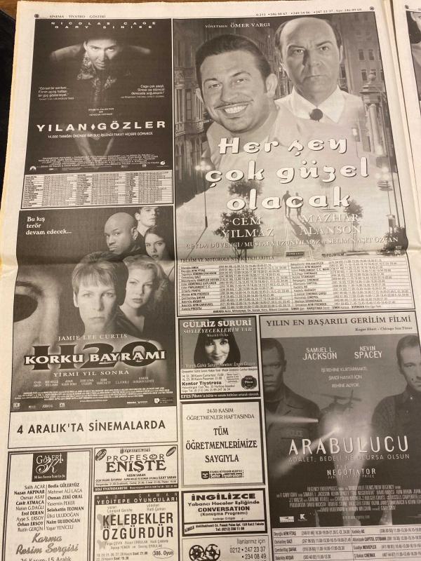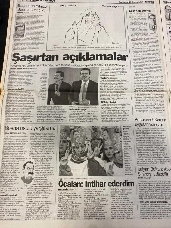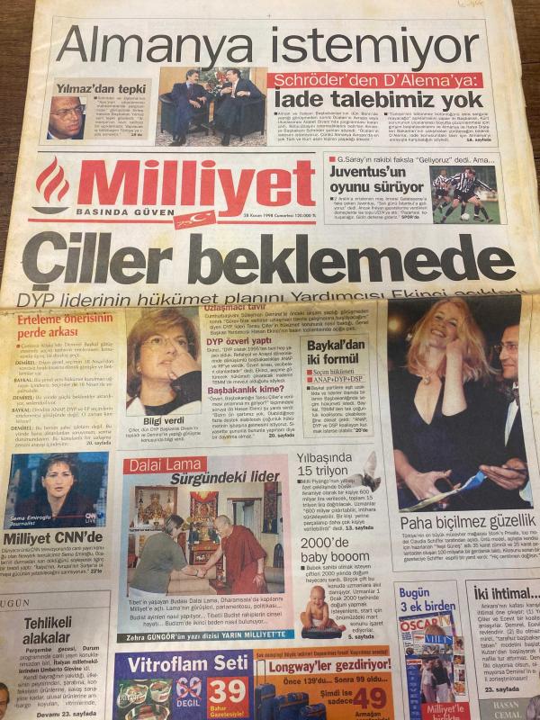 MİLLİYET GAZETESİ DOĞUM GÜNÜ HEDİYESİ - 28 KASIM 1998 - TAM TAKIM 38 SAYFADIR -Mesut Yılmaz-Gerhard Schröder-Massimo D’Alema-Tansu Çiller-Sema Emiroğlu-Zehra Güngör-Fevzi Aksoy-Togay Bayatlı-Toshack-Mustafa Denizli-Hülya Avşar-Nurdan Akmer-Ziya Küçüker-Cenk Başlamış-Hasan Pulur-Lejla Atişman-Sadrettin Kaya-İbrahim Yüksel Almanya istemiyor-Çiller beklemede-Dalai Lama sürgündeki lider-İki yüzlü Juventus-Toshack yine suçladı-Benden iyisi yok-Yolsuzluk bizde de var-Erdal İnönü kararını verdi Yokum-Nicolas Cage-Gary Sinise-Cem Yılmaz-Mazhar Alanson-Jamie Lee Curtis-Samuel L. Jackson-Kevin Spacey-Turhan Selçuk-Fikret Bila-Zehra Güngör-Ferit Demir-Melih Aşık-Ercan Akyol-Yalçın Doğan-Hasan Cemal-Ayşegül Aydıngün-Mehmet Burucu-C. Hüsnü Erkan Yılan Gözler-Her Şey Çok Güzel Olacak-Korku Bayramı-Arabulucu-Şaşırtan açıklamalar-Bosna usulü yargılama-Öcalan intihar ederdim-Terörün tanığı Sakık-PKK katliamlarına internette site-Protesto türbesi, Ali Naci Karacan tarafından kaleme alınmıştır. MİLLİYET GAZETESİ DOĞUM GÜNÜ HEDİYESİ - 28 KASIM 1998 - TAM TAKIM 38 SAYFADIR -Mesut Yılmaz-Gerhard Schröder-Massimo D’Alema-Tansu Çiller-Sema Emiroğlu-Zehra Güngör-Fevzi Aksoy-Togay Bayatlı-Toshack-Mustafa Denizli-Hülya Avşar-Nurdan Akmer-Ziya Küçüker-Cenk Başlamış-Hasan Pulur-Lejla Atişman-Sadrettin Kaya-İbrahim Yüksel Almanya istemiyor-Çiller beklemede-Dalai Lama sürgündeki lider-İki yüzlü Juventus-Toshack yine suçladı-Benden iyisi yok-Yolsuzluk bizde de var-Erdal İnönü kararını verdi Yokum-Nicolas Cage-Gary Sinise-Cem Yılmaz-Mazhar Alanson-Jamie Lee Curtis-Samuel L. Jackson-Kevin Spacey-Turhan Selçuk-Fikret Bila-Zehra Güngör-Ferit Demir-Melih Aşık-Ercan Akyol-Yalçın Doğan-Hasan Cemal-Ayşegül Aydıngün-Mehmet Burucu-C. Hüsnü Erkan Yılan Gözler-Her Şey Çok Güzel Olacak-Korku Bayramı-Arabulucu-Şaşırtan açıklamalar-Bosna usulü yargılama-Öcalan intihar ederdim-Terörün tanığı Sakık-PKK katliamlarına internette site-Protesto türbesi adlı eser Türkçe dilindedir.